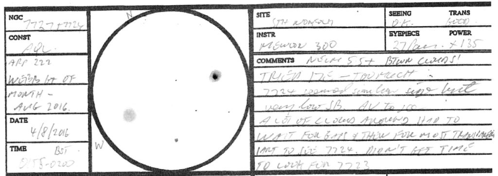 On you Webb Society web site you talk about NGC 2340 and the other nearby galaxies. Then you ask for some input. I checked my old observations and I will give them below. I did not include the two brighter galaxies NGC 2332 & 2340.